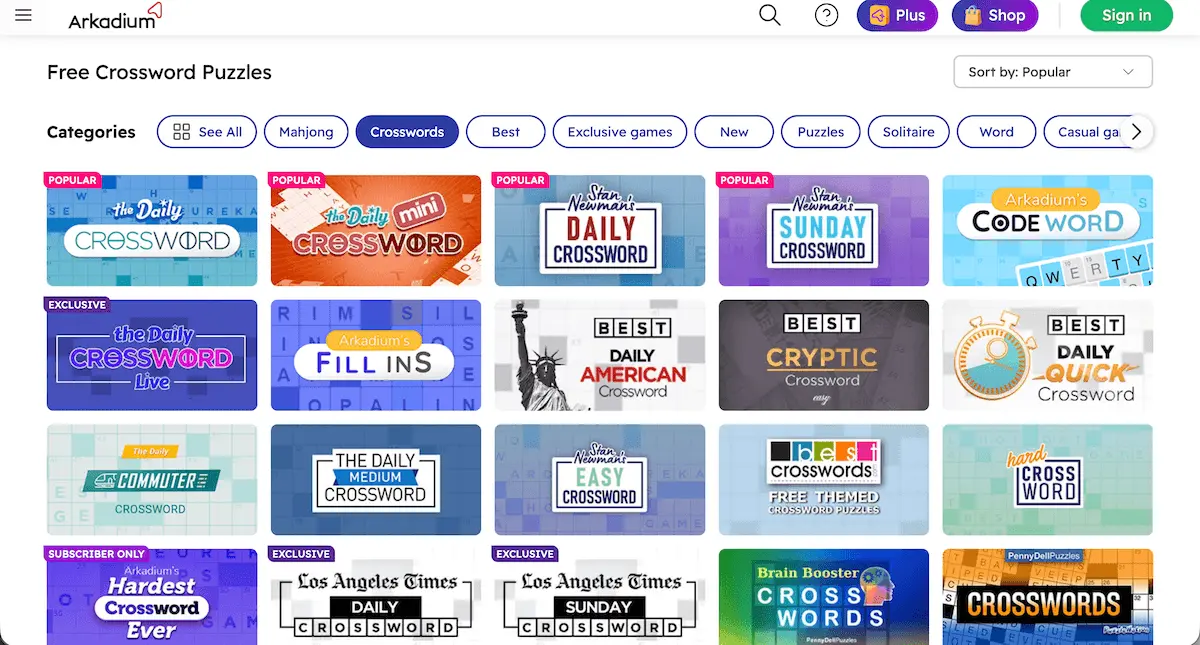 Are you looking to indulge your crossword habit? Arkadium offers an enormous